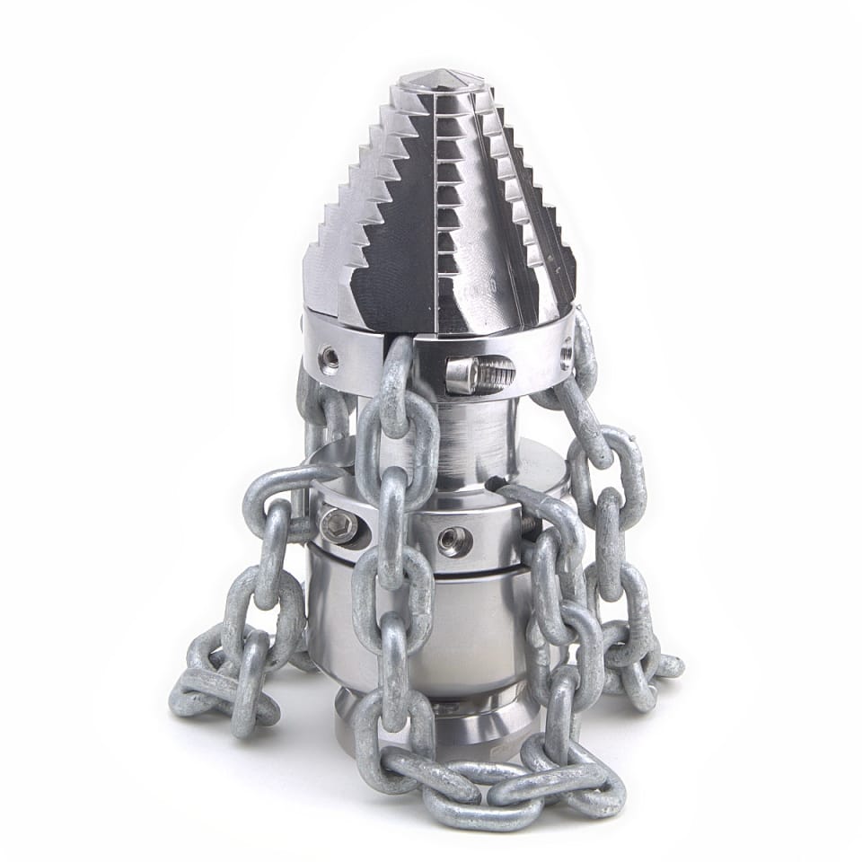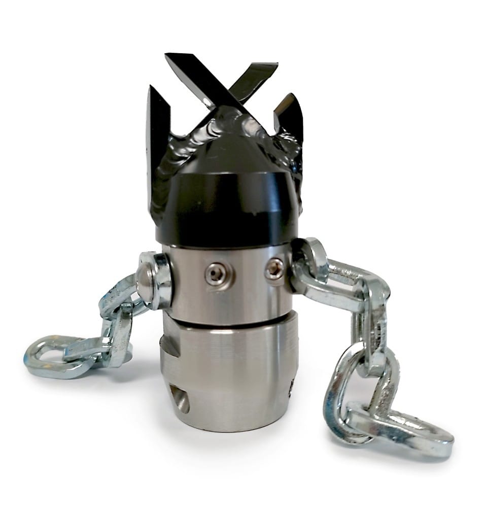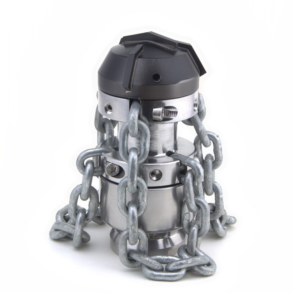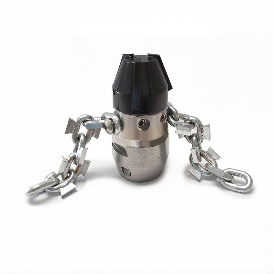 Mlaznica izrađena od nehrđajućeg čelika opremljena visokokvalitetnim lancima i dostupne s 4 izmjenjive glave: Poklopac, Bušenje, Karbid i Glava s noževima. Keramički umeci preporučuju se pri korištenju prljave ili reciklirane vode. Vijek trajanja keramičkih umetaka je dulji od onih od nehrđajućeg čelika. Kako bi se produžio vijek trajanja mlaznice koja rotira s lancem i postigao najbolji rezultat čišćenja, preporučuje se korištenje ovih mlaznica s vodilicama za centriranje i uranjanje u tekućinu za podmazivanje nakon svake upotrebe.