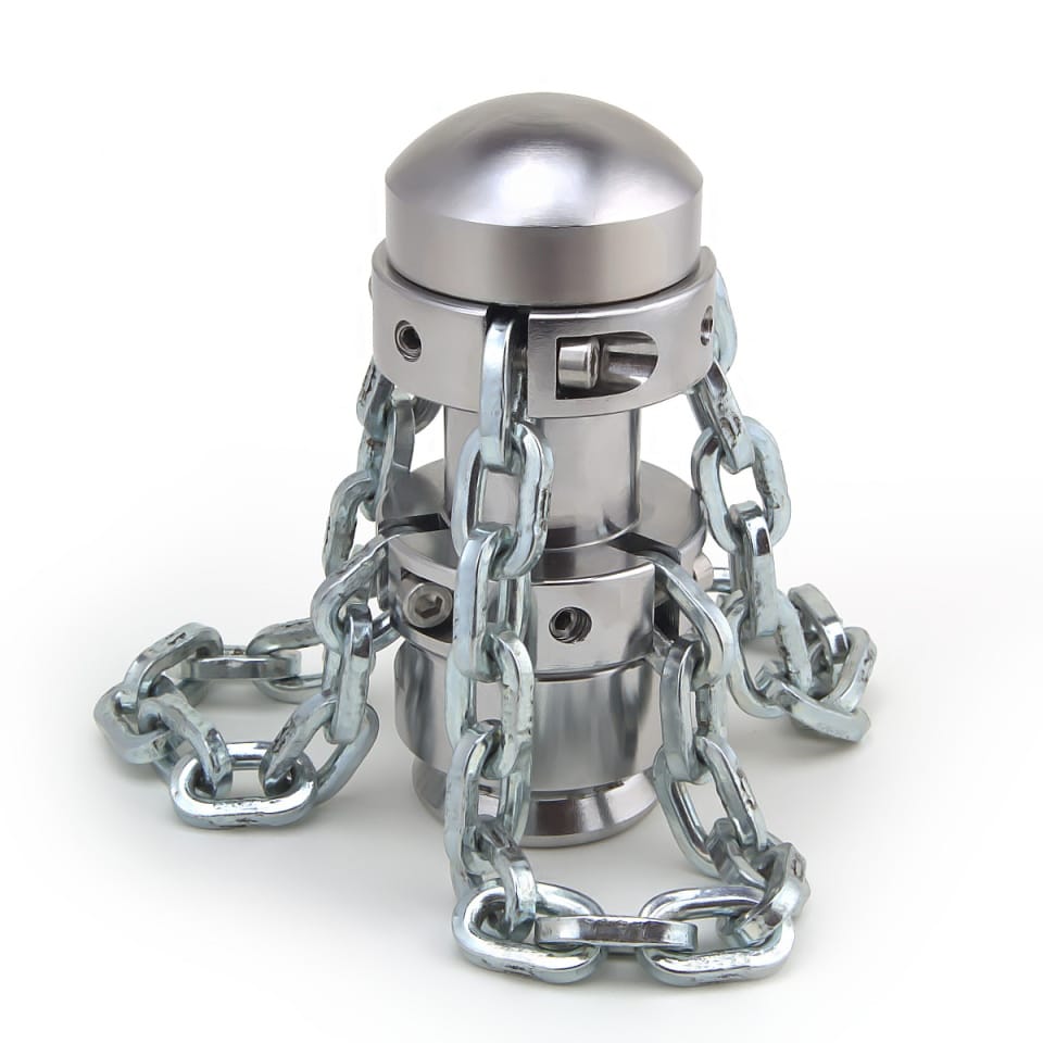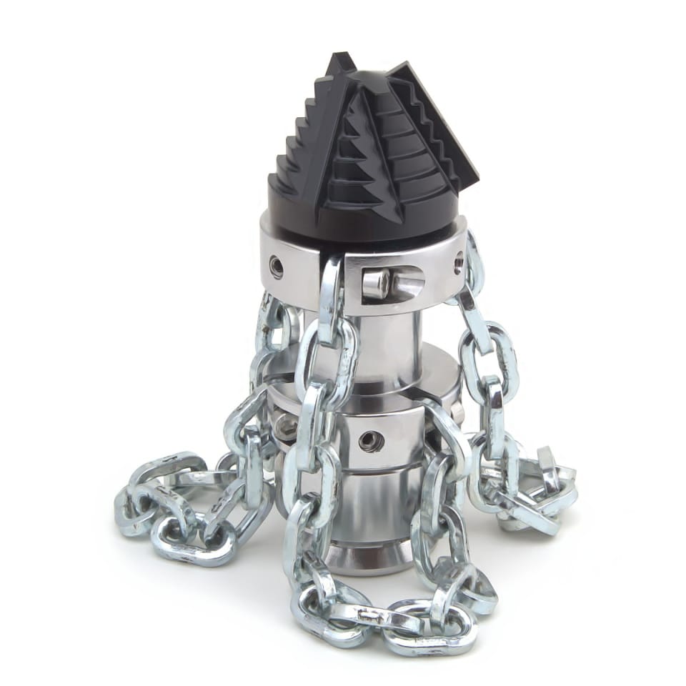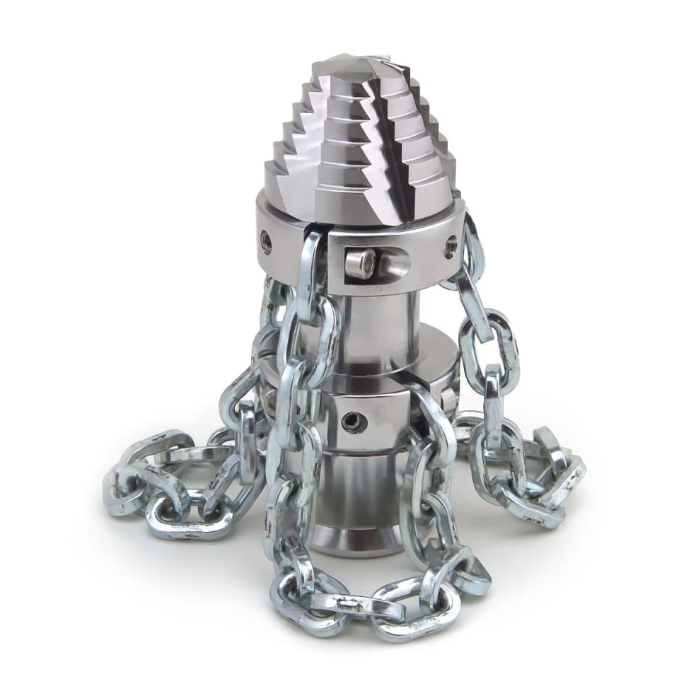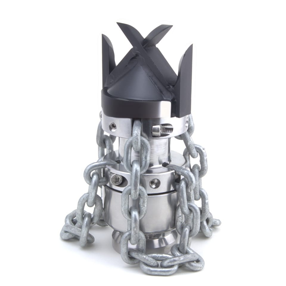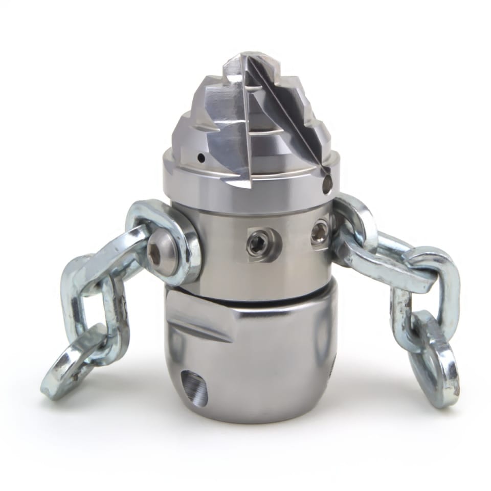 Mlaznica izrađena od nehrđajućeg čelika opremljena visokokvalitetnim lancima i dostupne s 4 izmjenjive glave: Poklopac, Bušenje, Karbid i Glava s noževima. Keramički umeci preporučuju se pri korištenju prljave ili reciklirane vode. Vijek trajanja keramičkih umetaka je dulji od onih od nehrđajućeg čelika. Kako bi se produžio vijek trajanja mlaznice koja rotira s lancem i postigao najbolji rezultat čišćenja, preporučuje se korištenje ovih mlaznica s vodilicama za centriranje i uranjanje u tekućinu za podmazivanje nakon svake upotrebe.