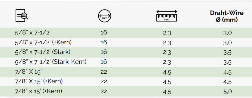 Unutarnja jezgra (crvena vodilica) dodatno stabilizira spiralu, smanjuje nakupljanje nečistoća unutar opruge te produžuje vijek trajanja sajle. Ojačane  verzije izrađene su od deblje žice za rad u izrazito zahtjevnim uvjetima i kod tvrdokornih začepljenja (korijenje, kamenac, kompaktne naslage).
